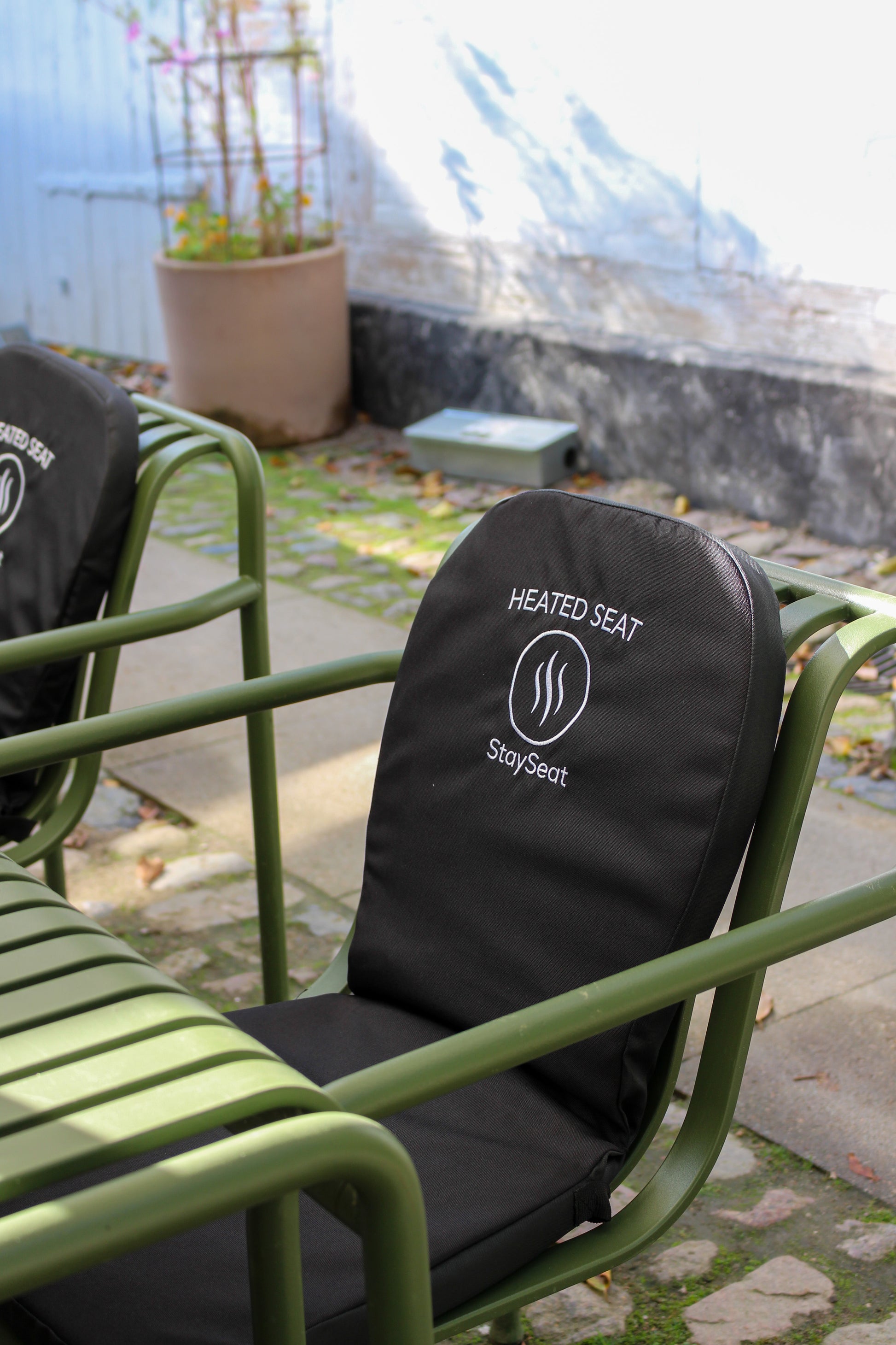Vores StaySeat er trådløs, med genopladelig batteri, der blot sættes i stikkontakten. Der er varme i både og sæde og stoffet er både vand og smudsafvisende. Med hynden medfølger en oplader der blot skal sættes i en stikkontakt.